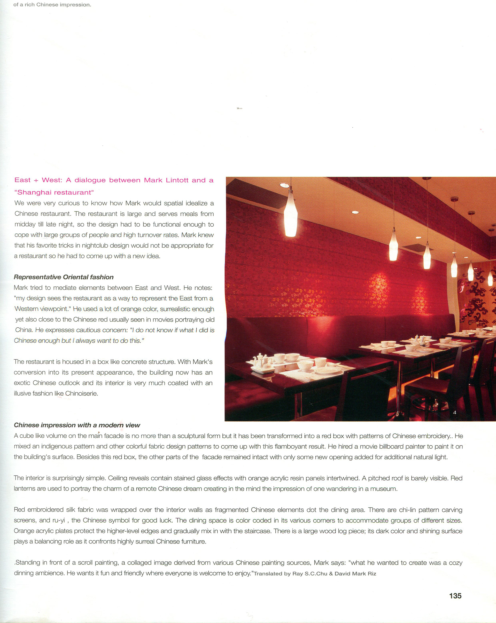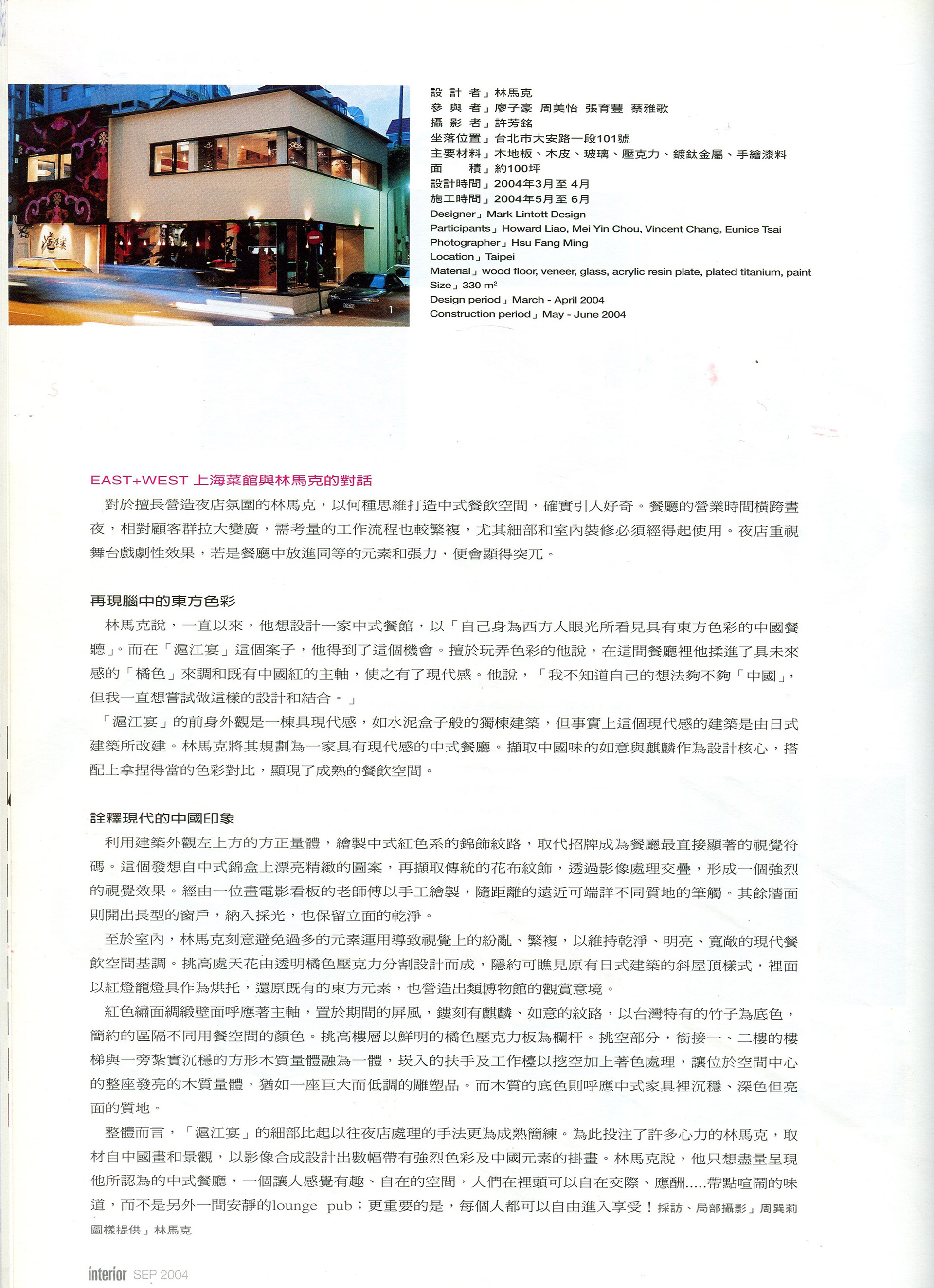 INTERTIOR NO.139 Ambience, Food, and Space. 氛圍.美食.空間 HU JIANG YEN 滬江宴 Date/ September 2004