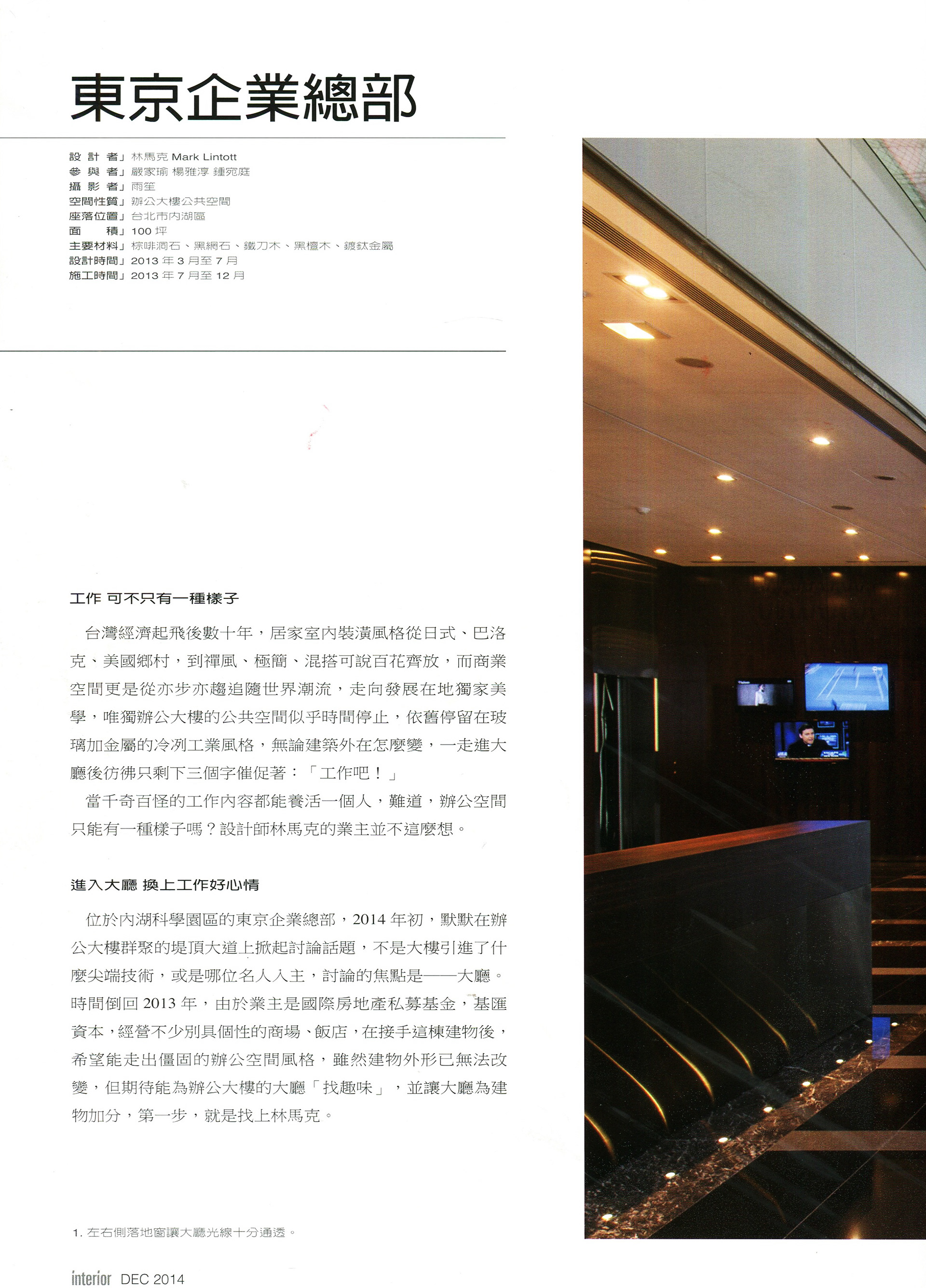 INTERIOR NO.255 Style= The Marks of Life 風格,是生活印記 TOKYO OFFICE BLDG 東京企業總部 Date/ December 2014