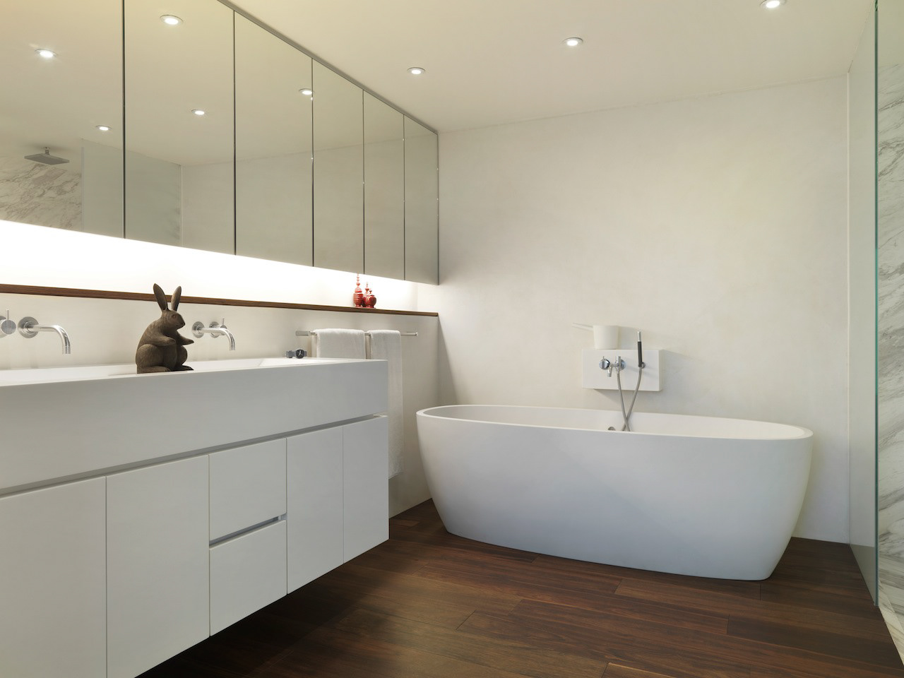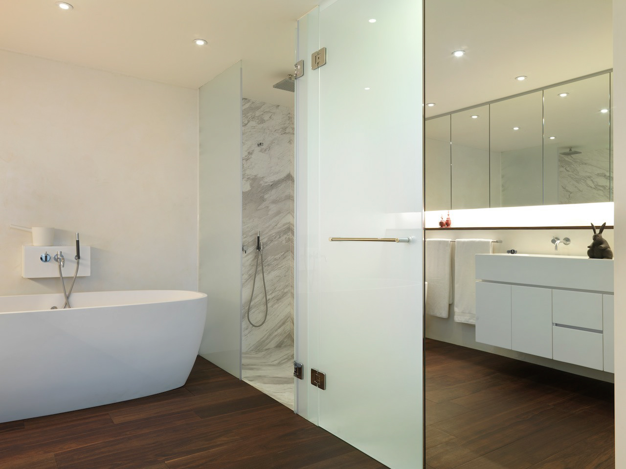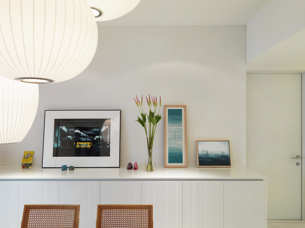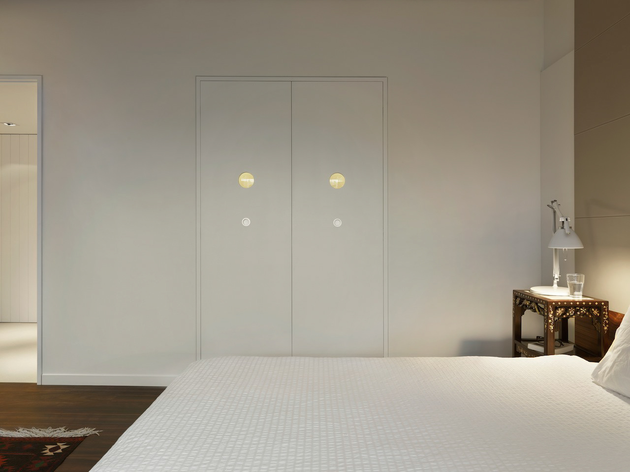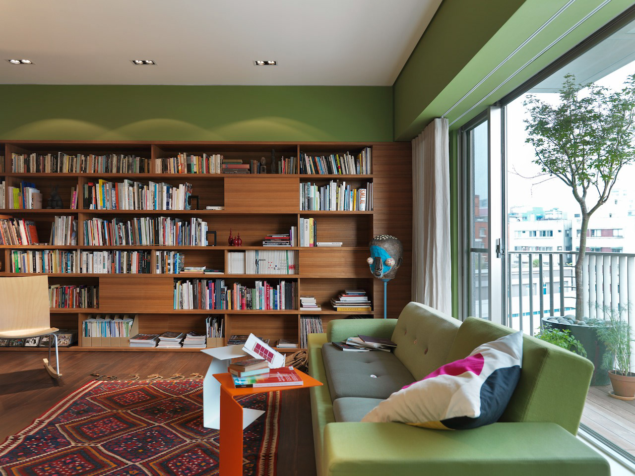 Private residence in Taipei for two Artists and their young family. They divide their time between Paris and Taipei but this is their home base. The owners were specific in their wish for "rooms" ie a plan that reflected a traditional European home with living room, dining room, study, kitchen etc rather than an open plan or multi functional arrangement such as is found in most modern apartments in Taiwan. This drove the whole project creating a hierarchy of spaces and a greater intimacy with their home for the owners. Floors were almost all finished in a fine marble terrazzo laid and polished on site. Likewise most walls are not painted but finished in a polished plaster that is smooth but warm to the touch. The only obvious colour is confined to the living room where a moss green was created and combined with a teak wood floor. The apartment was completed in 2013 and is maintained in its original state. It has become part of the family.