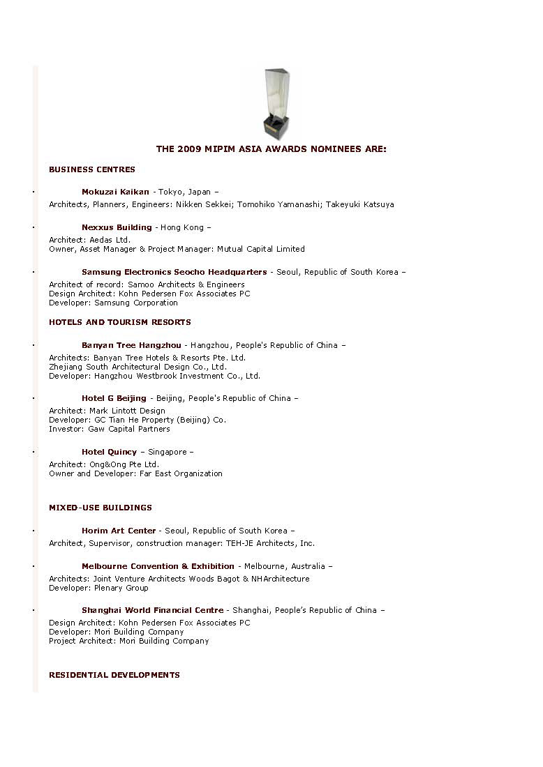 TID AWARD OF RESIDENTIAL SPACE 2007
