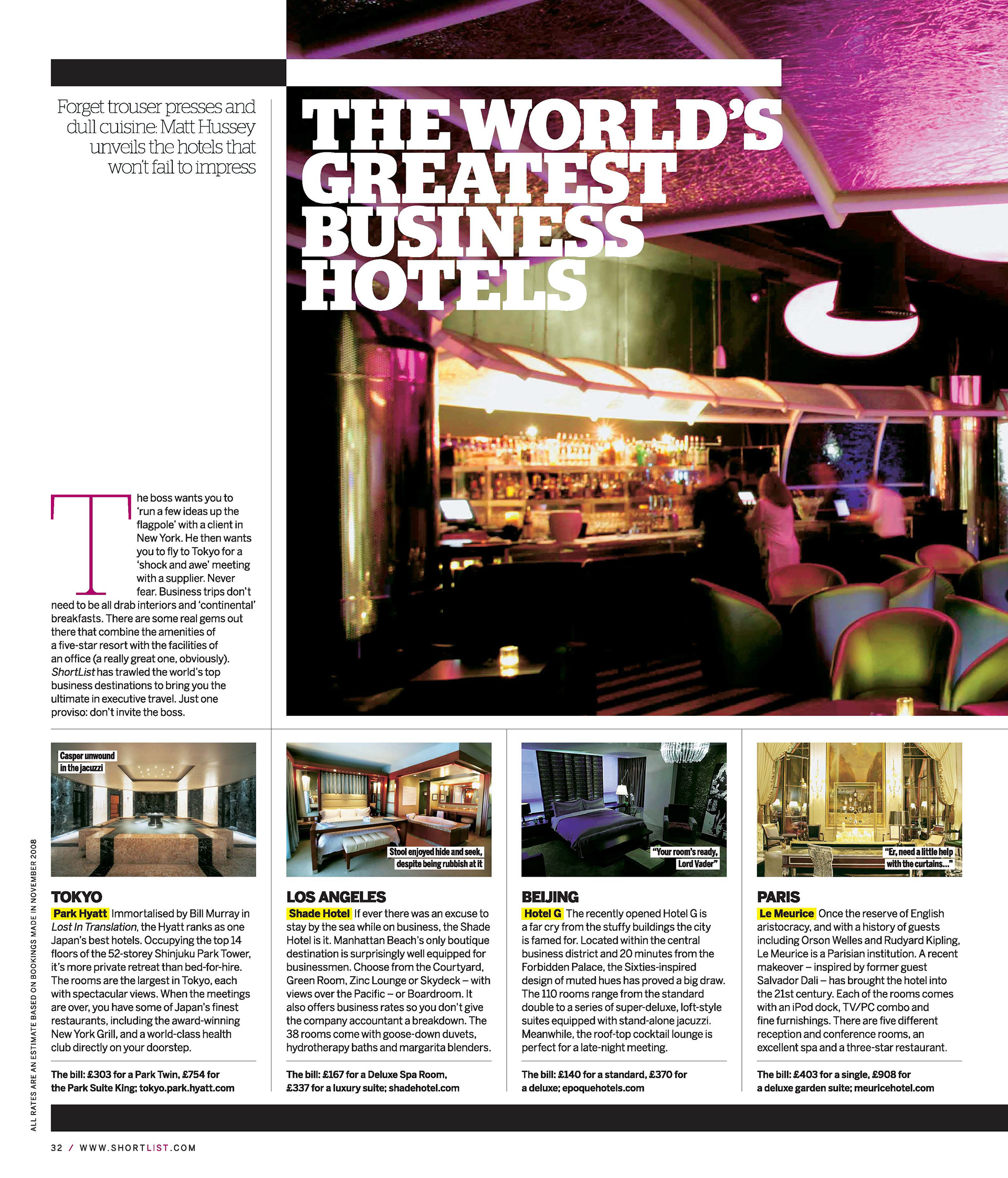 SHORTLIST NO.53 THE WORLD'S GREATEST BUSINESS HOTELS Project/ HOTEL G, BEIJING Date/ October 2008